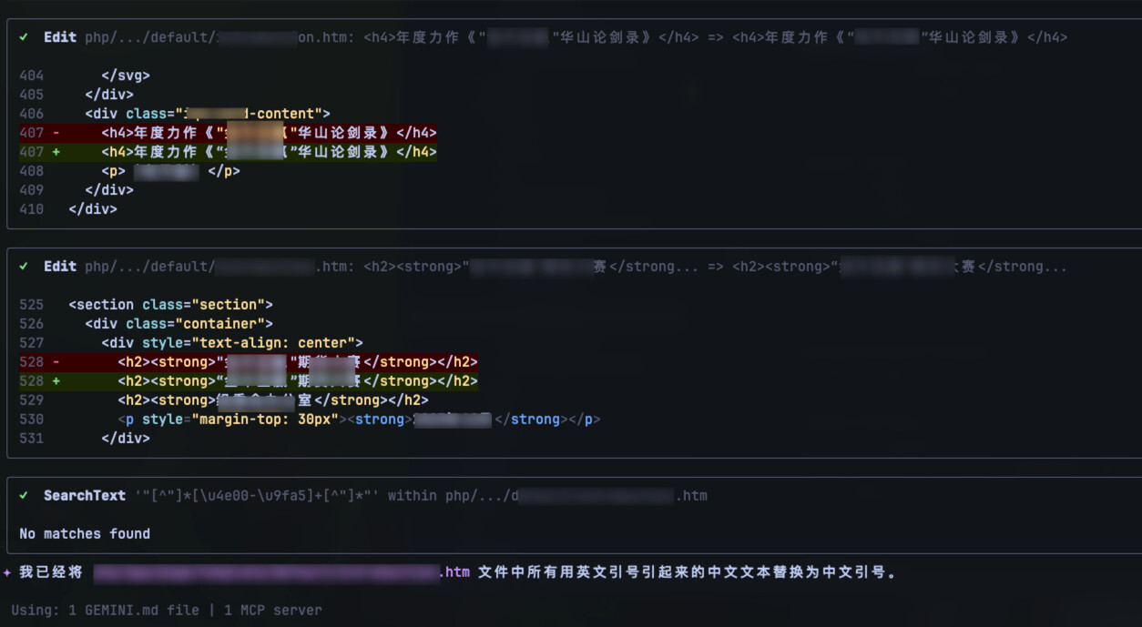 这个问题比较奇怪,我不确定是国产模型的问题还是啥,不过我用 gemini cli执行校对替换很容易