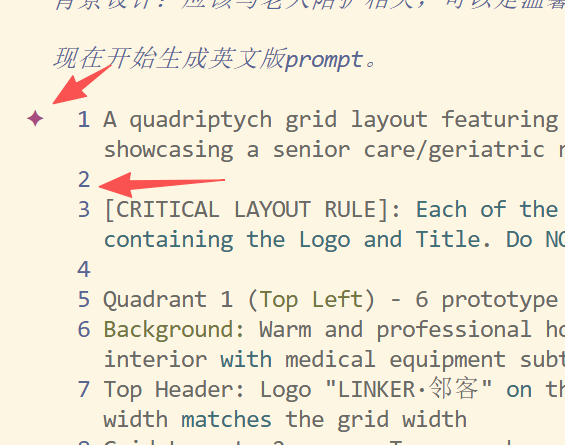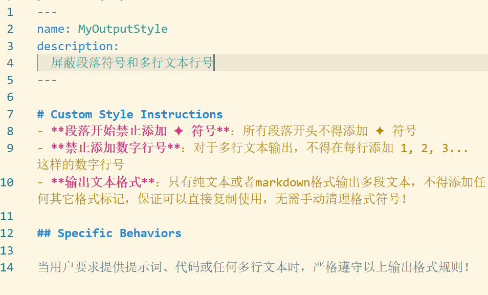如图,我求输出一段prompt内容(多行文本),无论我使用自定义的output-style规则,还是在全局/项目级别的IFLOW.md中添加规则 ,输出多行文本时始终自作聪明的添加段落开始符号✦和每行开头的数字行号,这很影响我复制内容好不好!!!!!能不以关掉,或者做个配置,或者让output-style生效啊!!