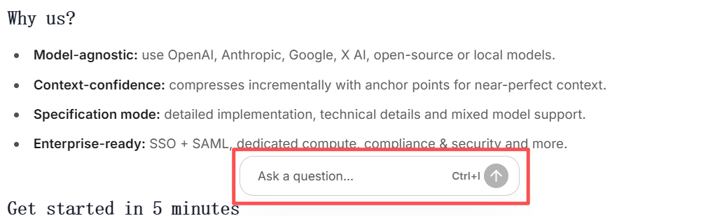像claude,droid这类cli的文档,都已经训练了专门的智能体基于文档内容回答问题,非常准确,体验很好,但是iflow的文档现在只有搜索,要么去https://iflow.cn/ 提问,https://iflow.cn/还要搜索半天,这就很扯了,自己家的东西,回答问题还要互联网上搜索一番,耗时久不说,信息还有滞后。而且在cli中问大模型相关使用问题,也要去互联网搜索,就该内置个文档的知识库!