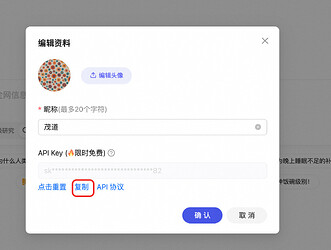 解决方案:登录心流内网官网,点击右上角头像->我的账户,复制 APIKey 即可