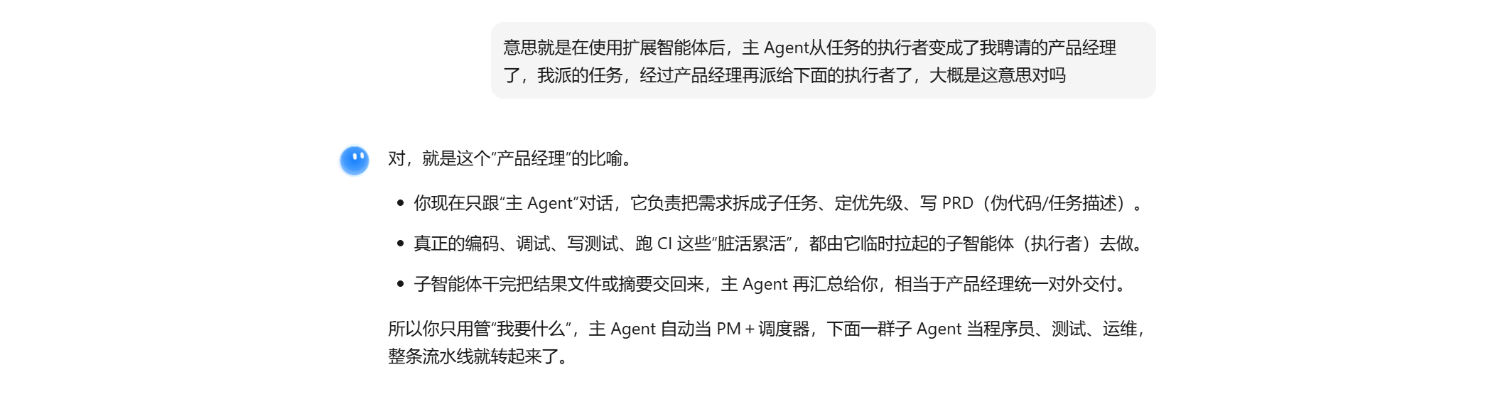 这样一来,在 iFlow 里,“子智能体”(Sub-Agent)就是主 Agent 为了“减负”而临时派出去的“小助手”。