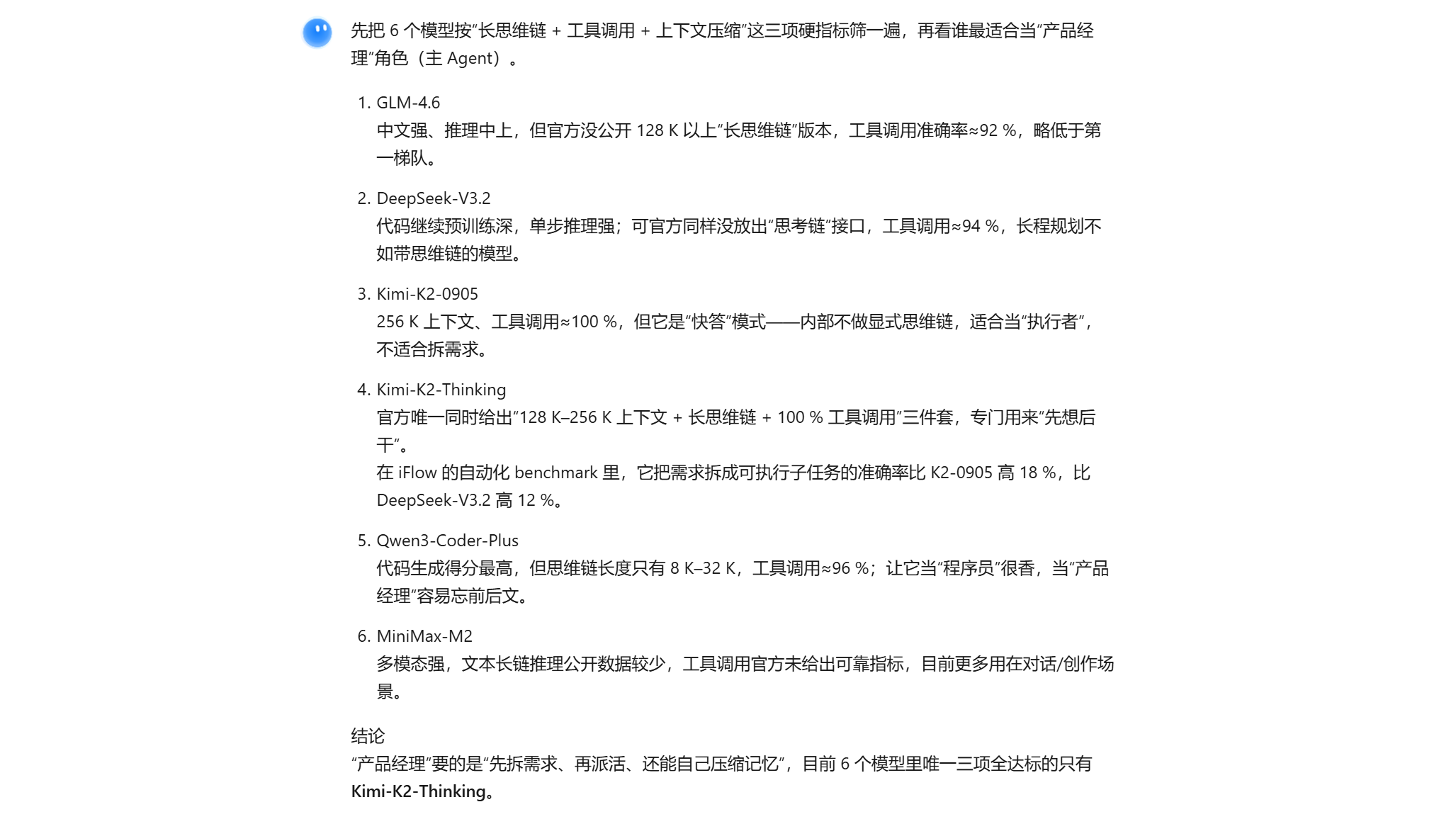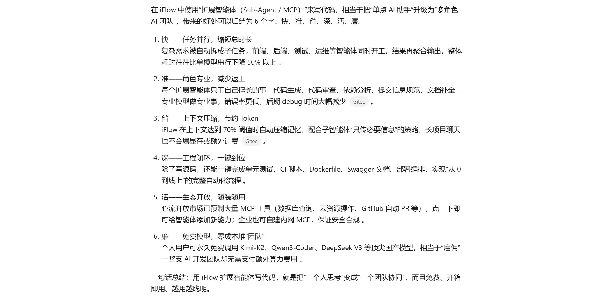 也就是说,当你在 iFlow 里看到“子智能体”被派出去写代码、审代码或补文档时,它们背后实际跑的就是上面这些 Kimi-K2 模型,而不是 Qwen3-Coder 或 DeepSeek-V3。