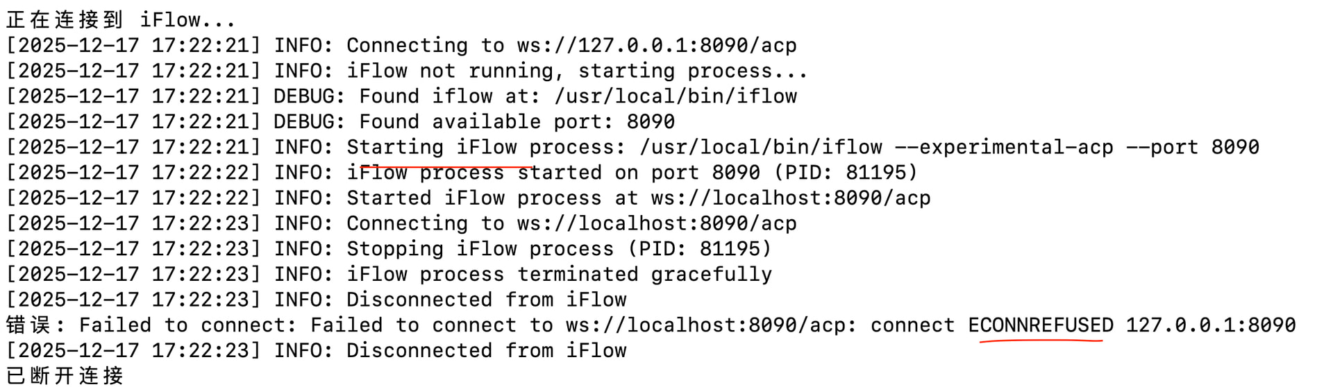 1、关闭 iflow --experimental-acp --port 8090 即不运行该代码
