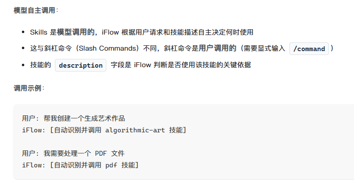iflow有自动触发机制,你可以让它自己给某个技能配置上,比如关键字触发