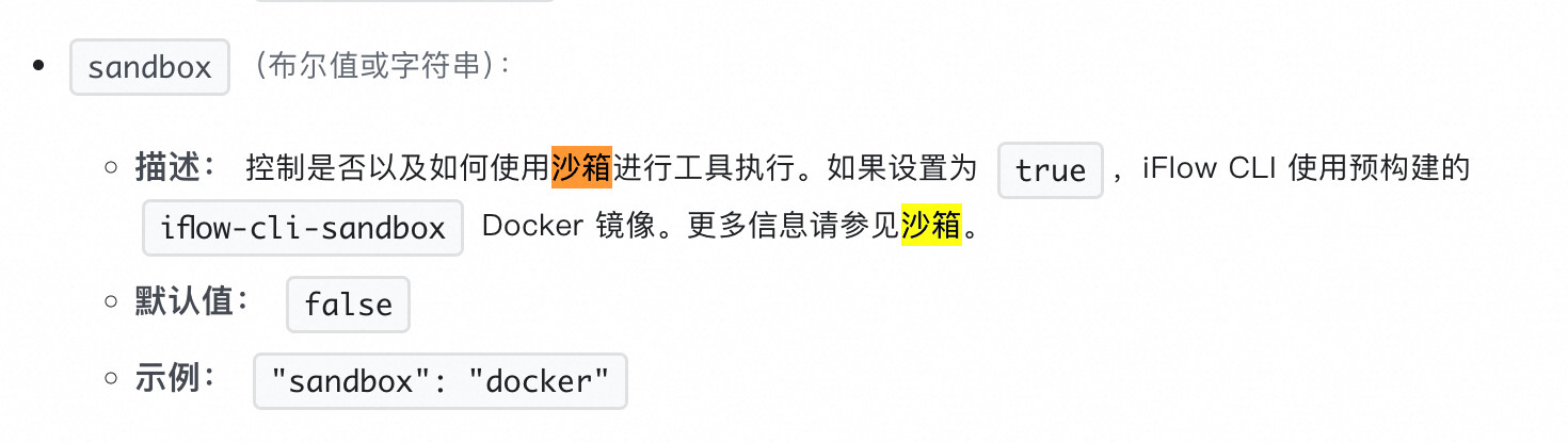 默认情况下,它使用预构建的 iflow-cli-sandbox Docker 镜像。