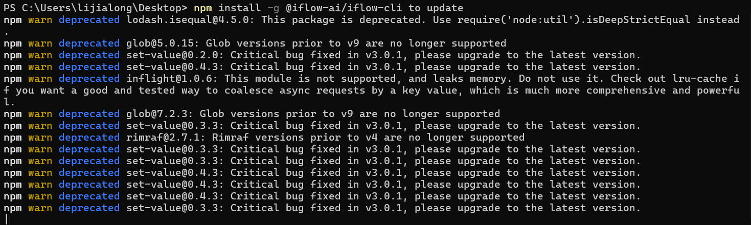 npm install -g @iflow-ai/iflow-cli@latest --legacy-peer-deps