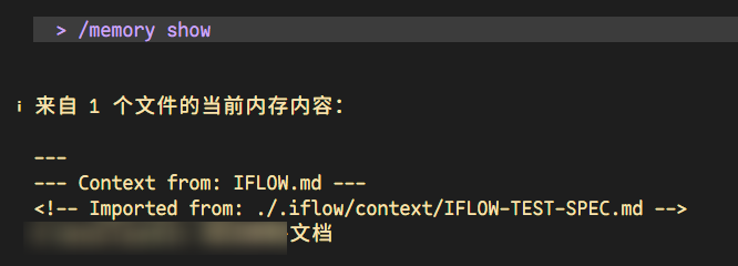 2 目前只能使用 /memory show 可以看见详细的上下文内容,但是内容太多(也不方便判断iflow-cli是否正确导入了呢)