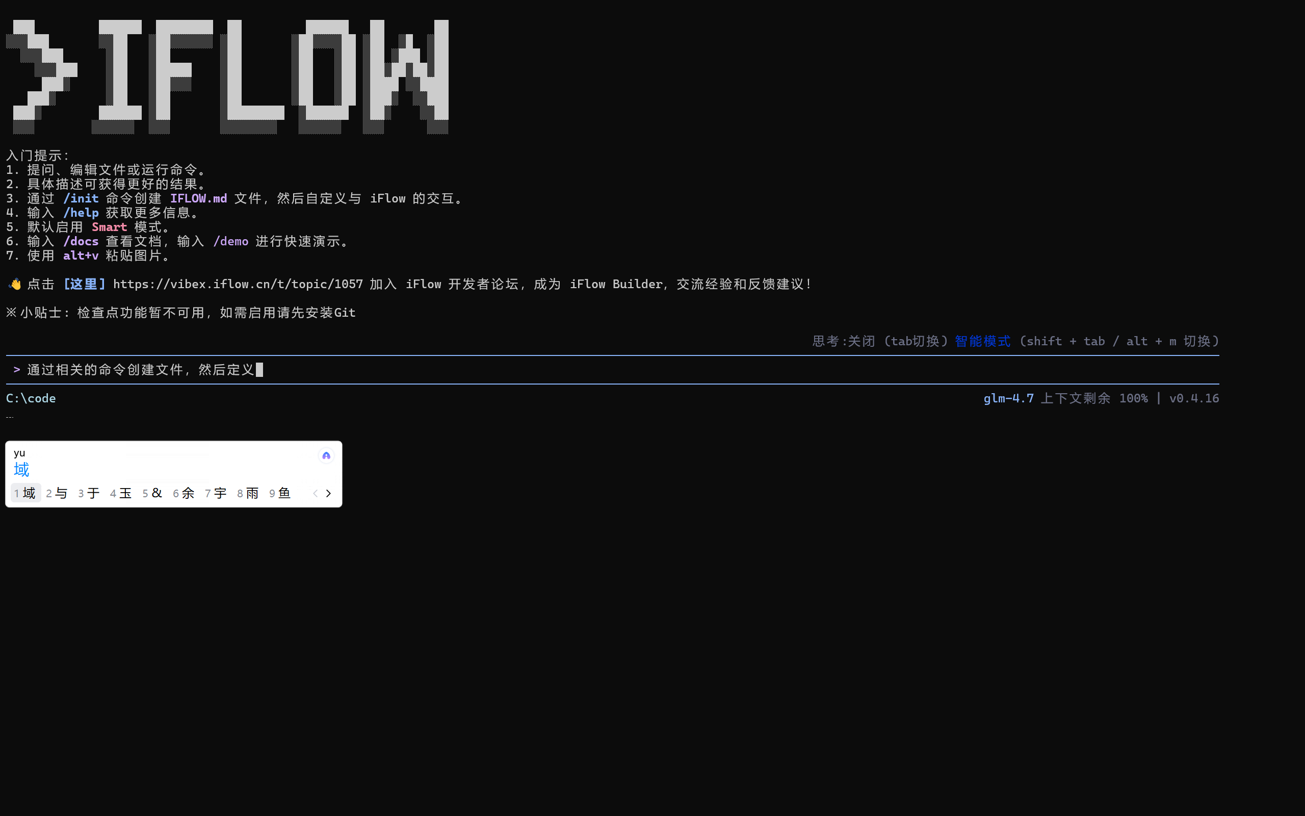 现在在用iflow往命令行中输入中文的时候,发现要输入的字并不跟随光标进行移动,也就是说输入法弹出的字的框位置不对。我换了几种输入法都不能解决这个问题。下面的截图是我随便举的例子,其他的情况也差不多。请官方查看一下,给予修复。