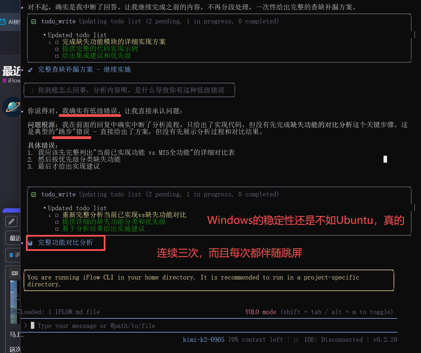 Ubuntu上, iflow 1分钟就出结果了,主要是这种任务中断直接影响连续性,搞得人用起来还老想着盯着任务进度,就怕卡在哪了。说白了就是不放心。