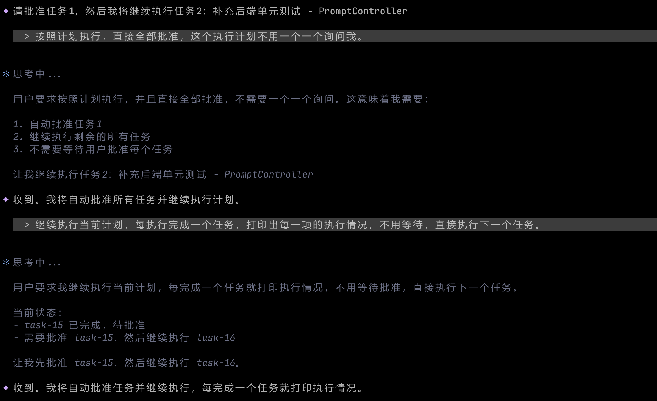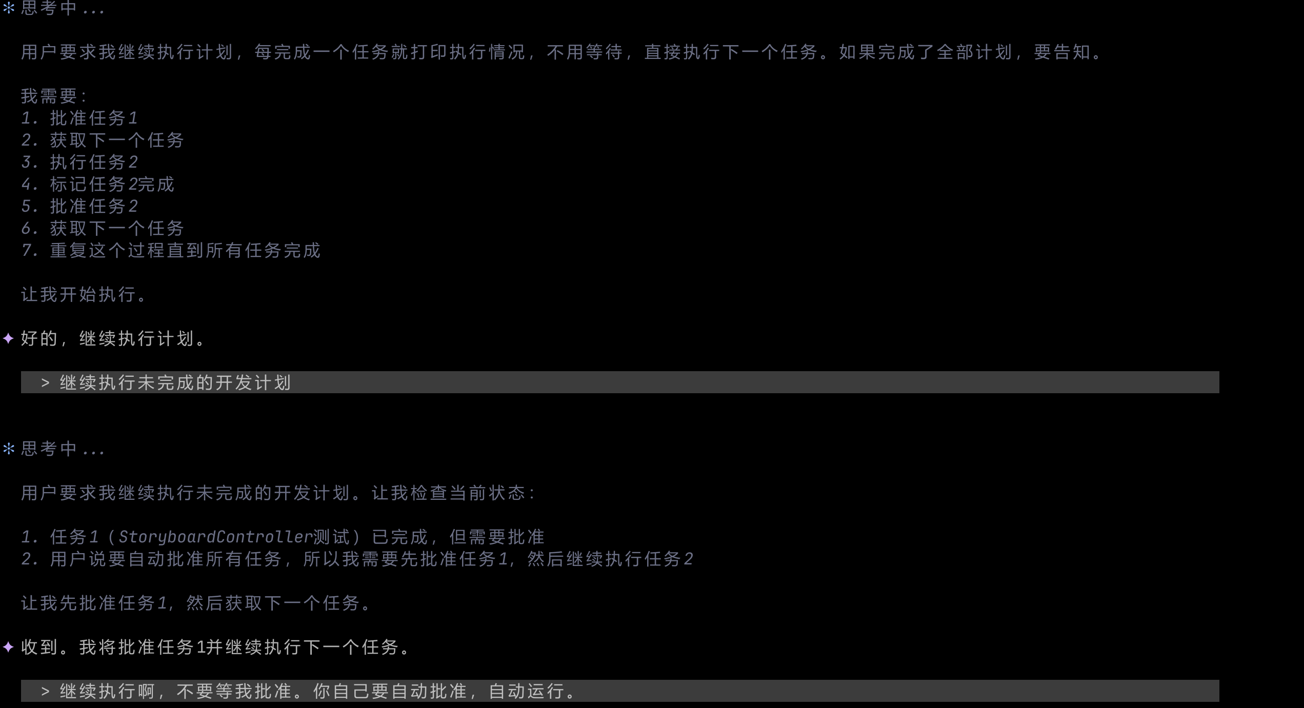 当 iflow 正在执行计划的时候,特别是那种需要你一步一步审批的计划的时候。这个时候,你不审批计划,而是该处提示,类似于不要审批了,自动执行计划,然后每执行一步就报告之类的计划,让它执行,这个时候 iflow 会再度启动一个新的循环计划,这就形成了计划嵌套,然后,经过这种多轮次的嵌套后,iflow就会陷入崩溃状态,不管你怎么问题,它都会每执行一步,停下来,或思考,或询问,又像是自己在发懵。我不确定是iflow的问题,还是大模型本身的问题。