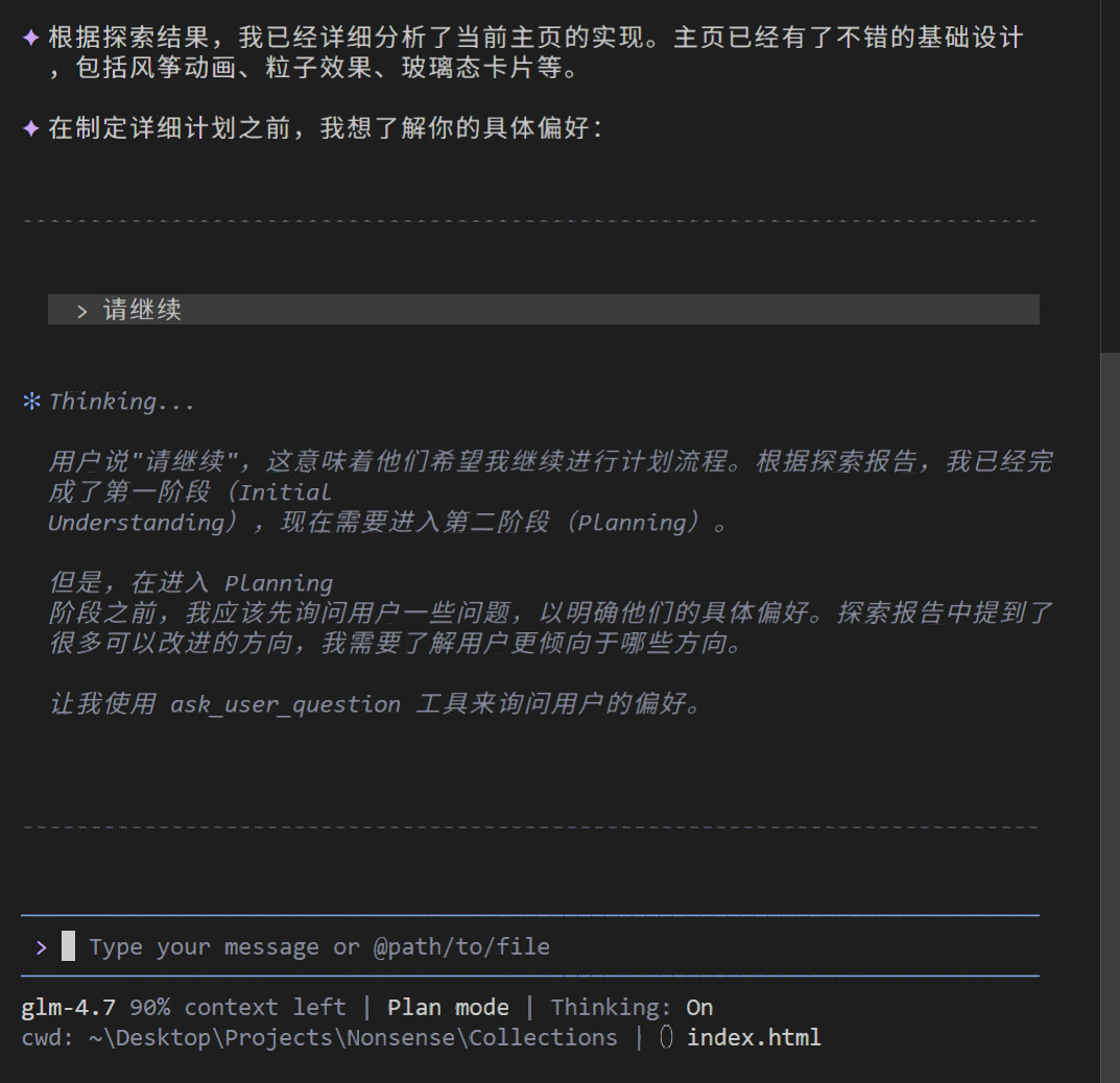 在应该调用ask_user_question的时候,它无法继续下去,通常会卡住,提醒了以后也没有效果。