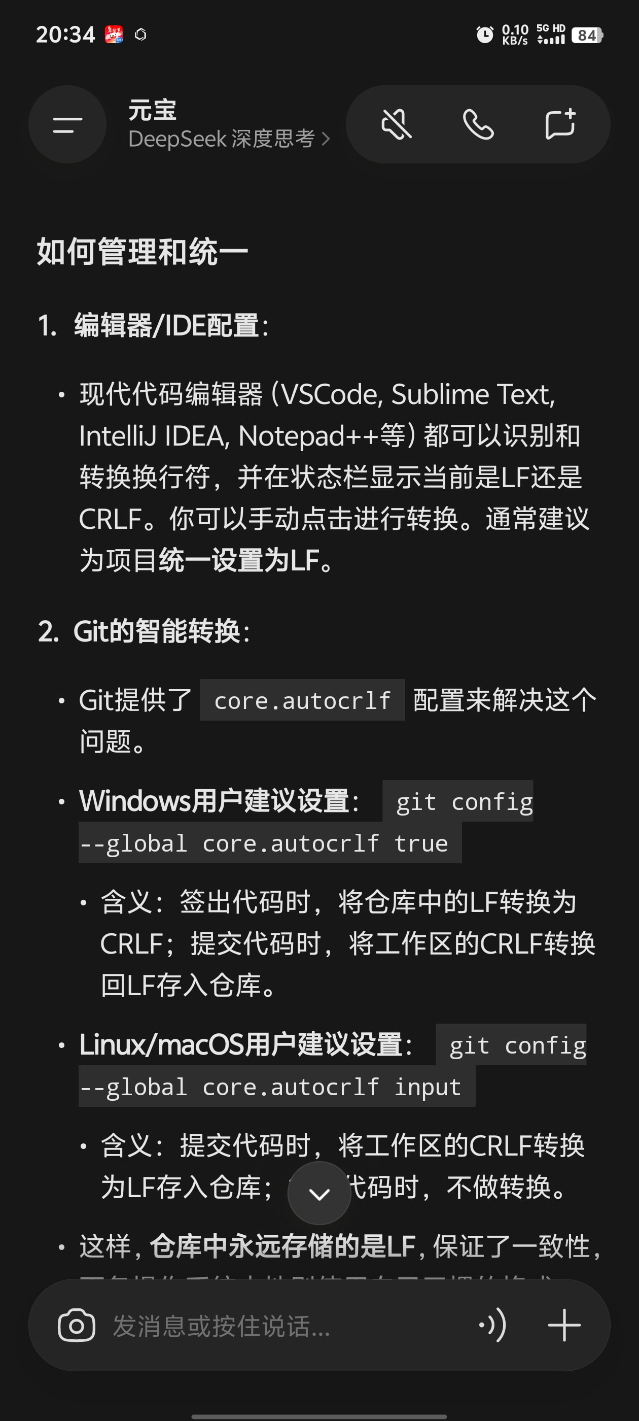 理论上,现代的编辑器都应该能够自动识别并转换,提交Git仓库,建议配置一下,统一按LF提交,这样跨平台开发的项目就不会有问题