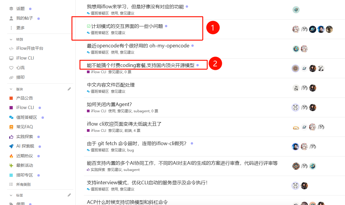 当前论坛基于开源框架 Discourse 进行搭建,我们选择这一框架,是由于它在开发者社区中广受认可,具备良好的可扩展性与原生论坛感。所以保留了原生框架的设计风格,以契合iFlow社区的技术氛围与用户群体的偏好。
