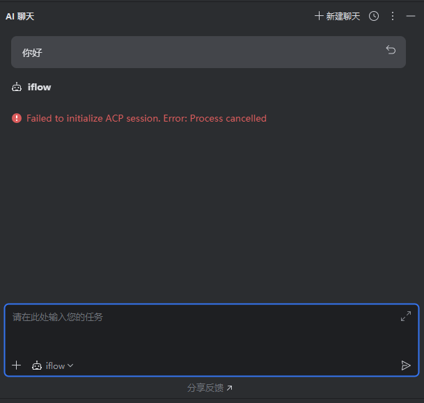 Failed to initialize ACP process. Process terminated with exit code: 1. Process output: