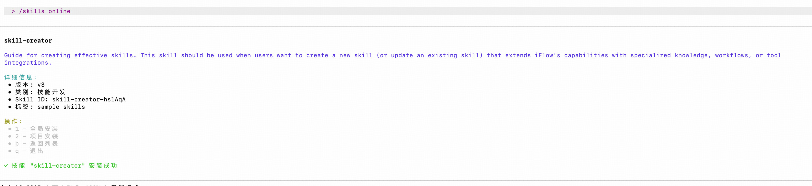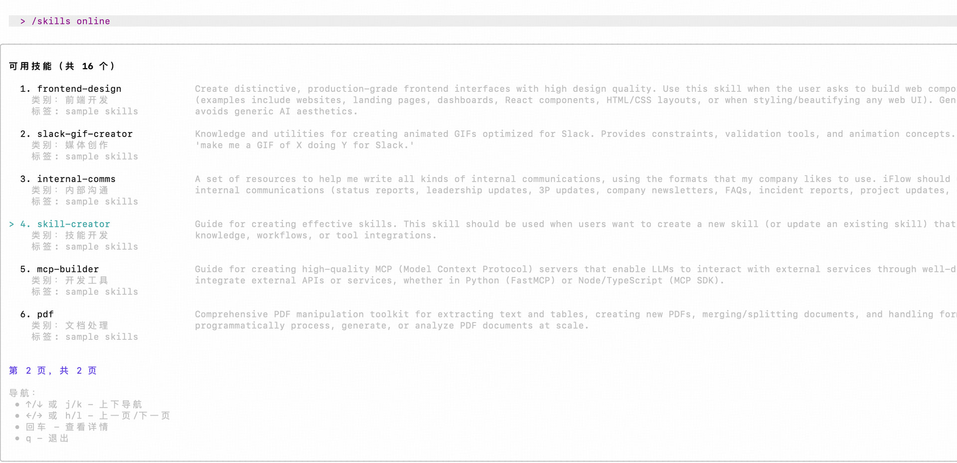 输入命令 /skills online