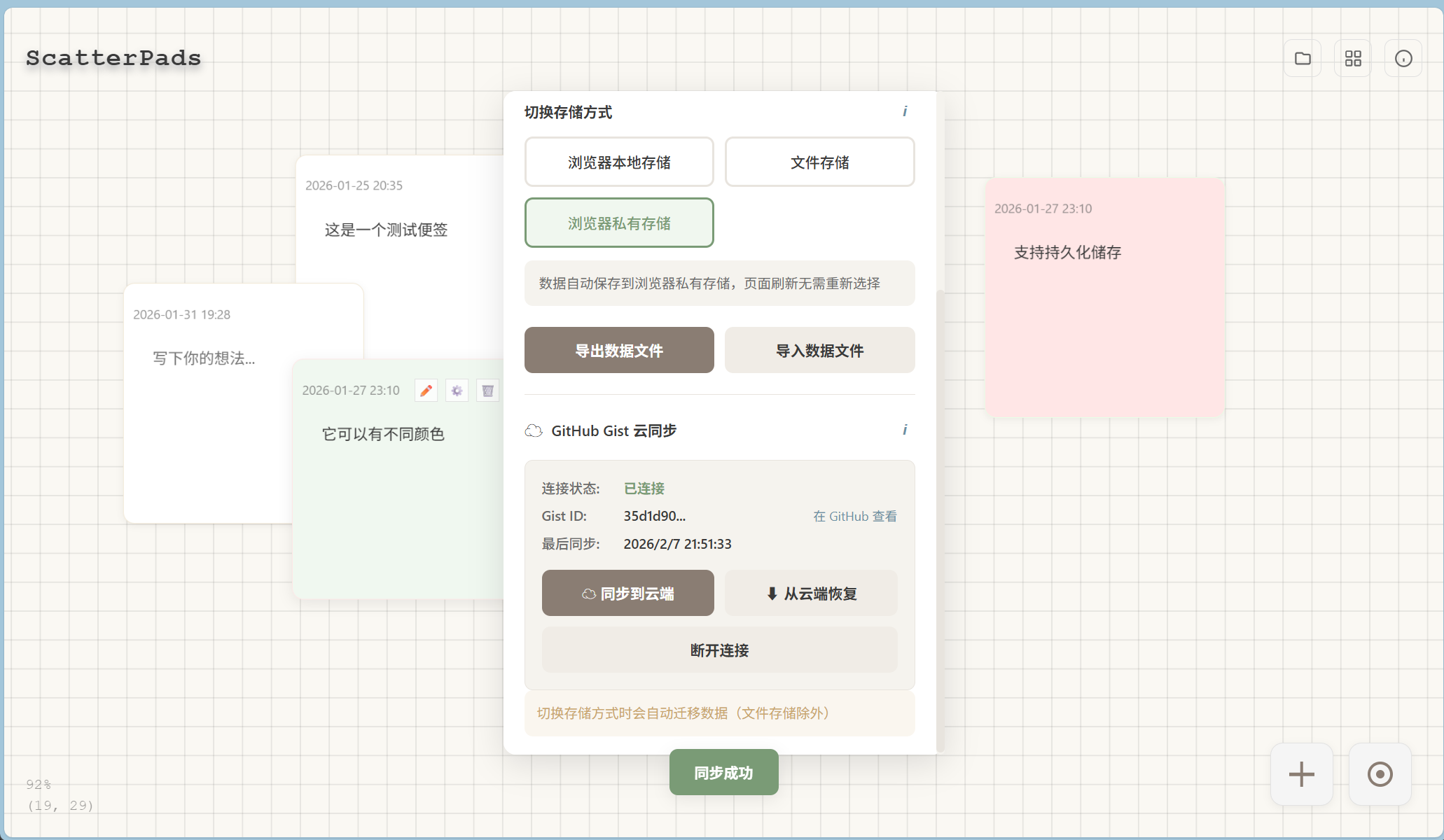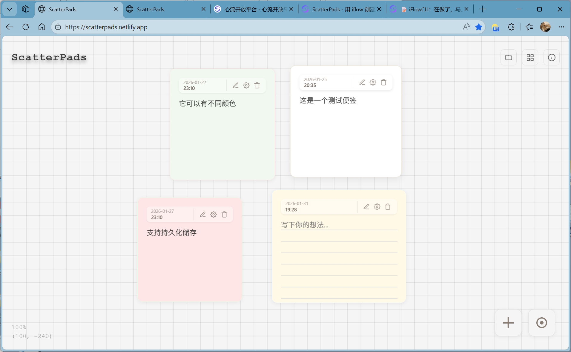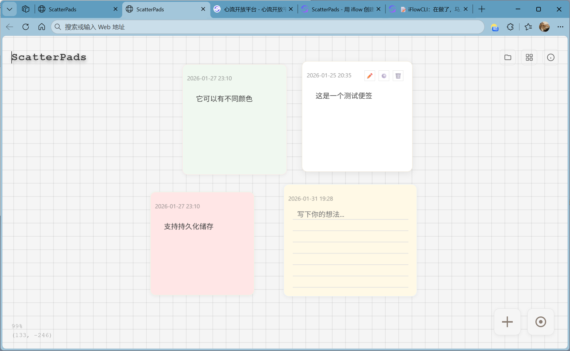 但我的目标不止是便签。底层文件系统已设计为通用容器 —— 未来,你可以直接拖进 PDF、视频链接、网页快照…… 让每个画布成为你项目的“高速缓存区”。