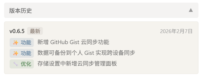 2026年2月7日 已更新到v0.6.5,增加GitHub云同步功能