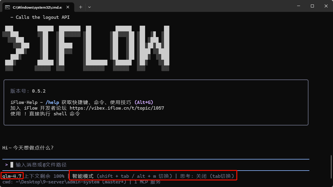 5. 运行 `iflow` 来启动 iFlow CLI