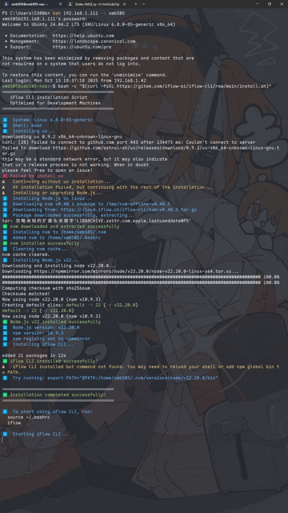 首先我们在 NAS 上安装 iflow-cli