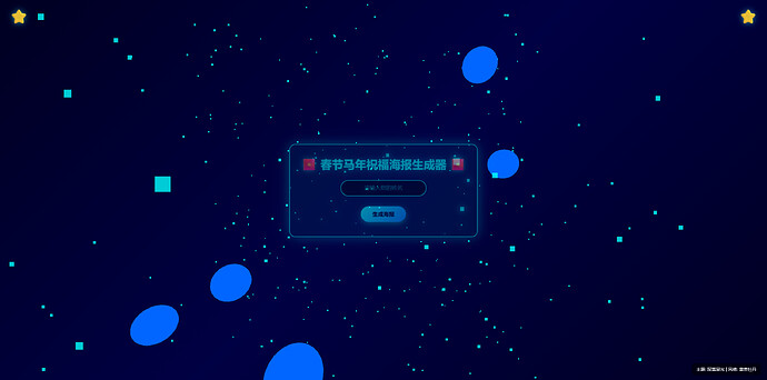 春节马年祝福海报生成器是一个基于 HTML + CSS + Three.js 开发的春节主题互动网站。