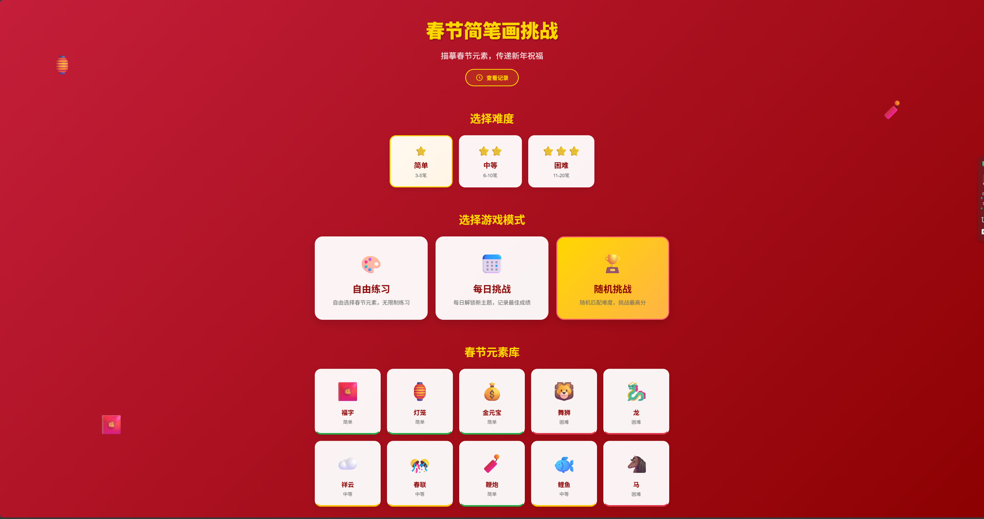 春节简笔画挑战小游戏