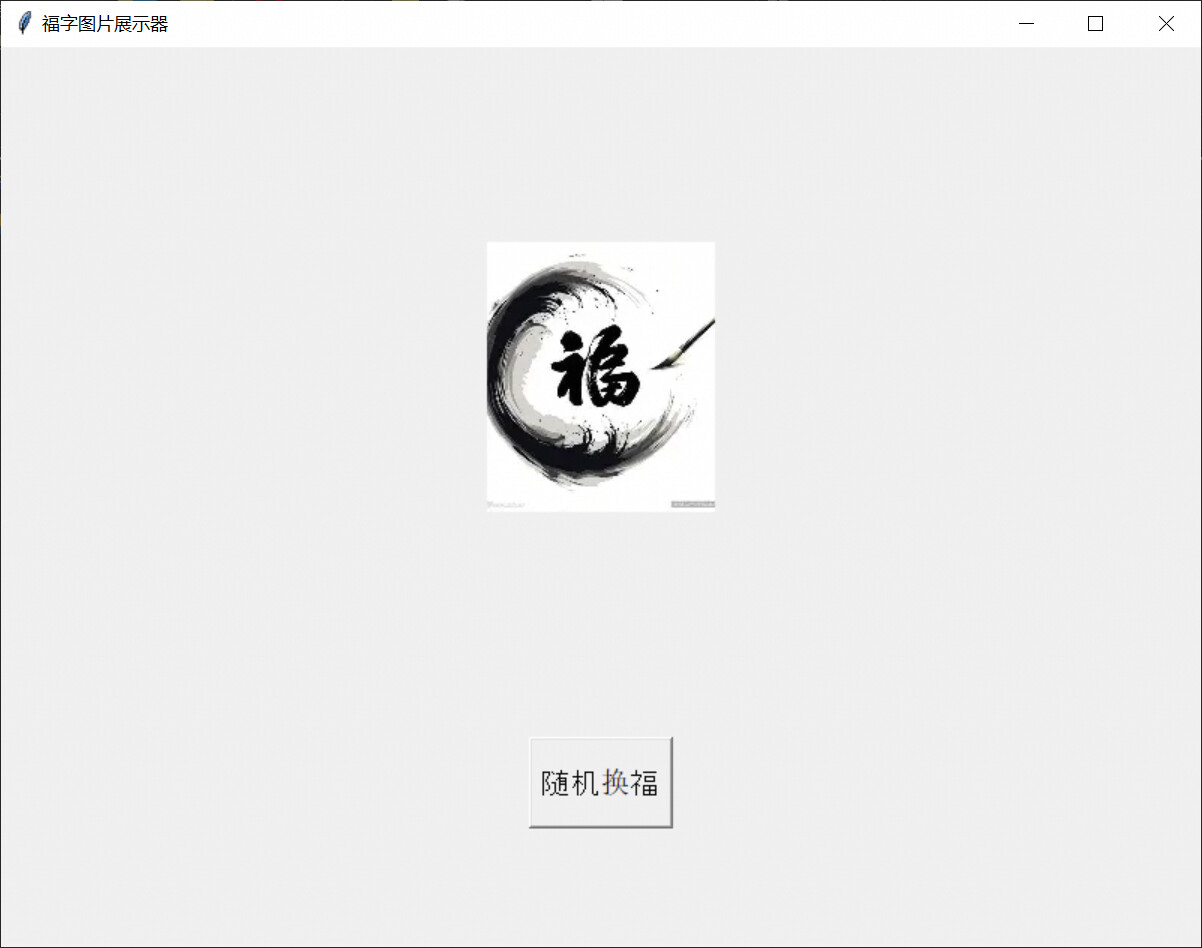 帮我使用python编写一个GUI程序,用来实现点击按钮随机从bing搜索引擎中展示福字图片,每当用点击"随机换福"按钮时随机挑一张福字进行展示。整体页面为上下两部分,上部为显示某一张随机的福字图片,占据整个GUI的8成显示部分,GUI的界面初始化打开大小为用户桌面整体的50%即可,下部为一个按钮,按钮名称为"随机换福",两部分需要分隔开来,不要混在一起;另外,请将程序封装为可以在MacOS和Windows两个平台可以打开的快捷方式,并一并将程序运行所需要的环境封装进去,从而达成用户双击即可运行的目的;图片在网页中展示的实际形式案例为:<img... >方便你编写提取的脚本文件。