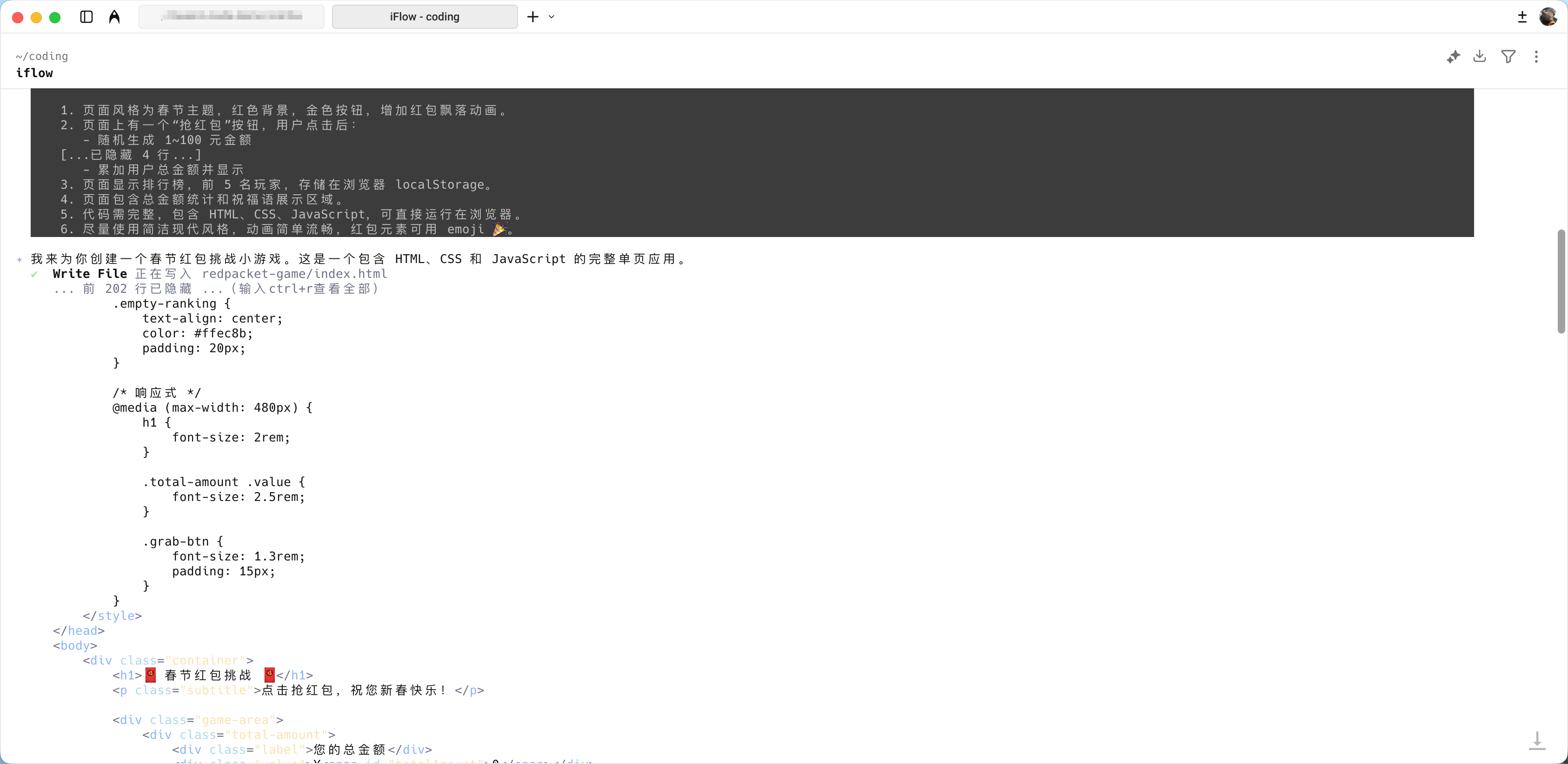 代码快速生成:通过 iFlow CLI 的 Prompt 功能生成 HTML/CSS/JS 代码