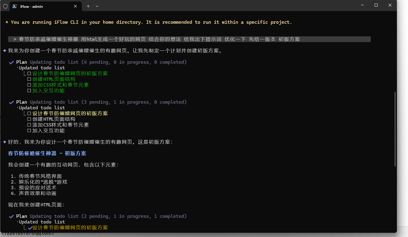 - 项目生成:使用 iFlow CLI 创建前端 Web 项目