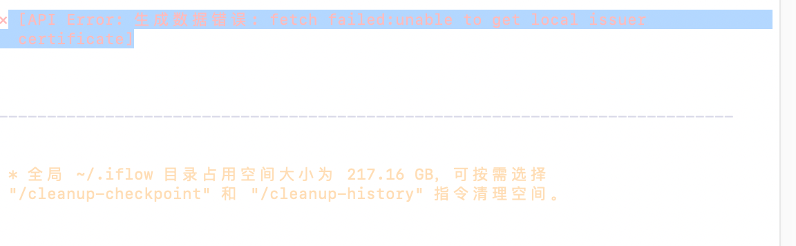 [API Error: 生成数据错误: fetch failed:unable to get local issuer certificate]