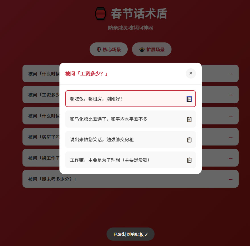 春节「话术盾」—— 防亲戚灵魂拷问助手