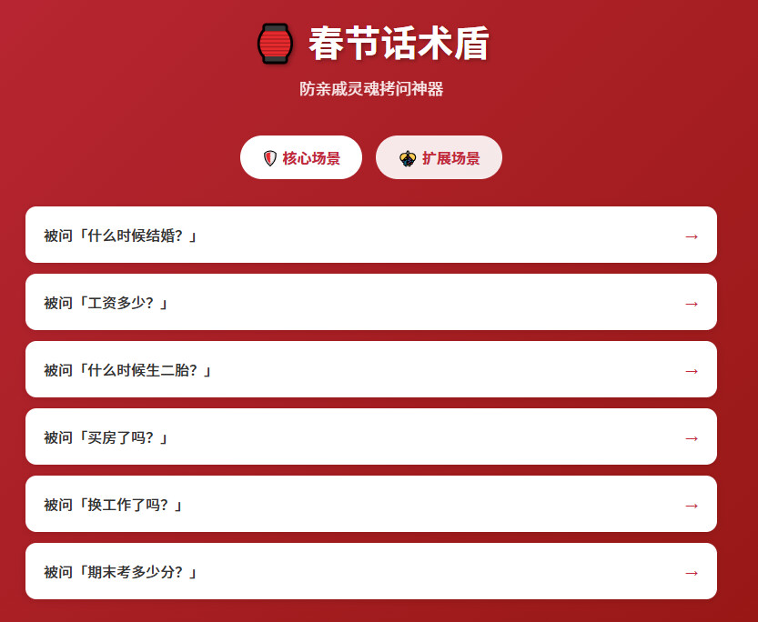 选题: 春节「话术盾」—— 防亲戚灵魂拷问助手