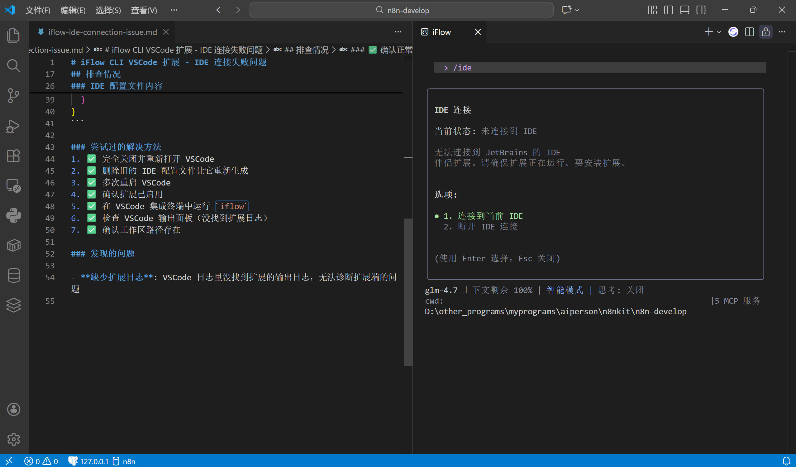 iFlow CLI VSCode 扩展 - IDE 连接失败问题**
