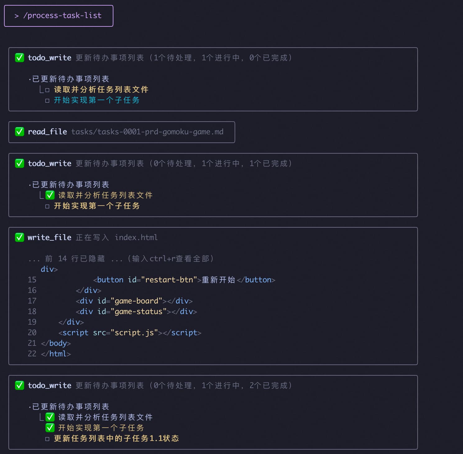 直接输入/process-task-list,就可以让他进行写代码任务了
