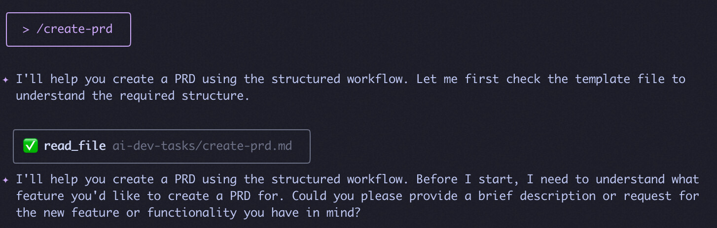 首先通过/create-prd方式,让AI帮我们创建一个需求