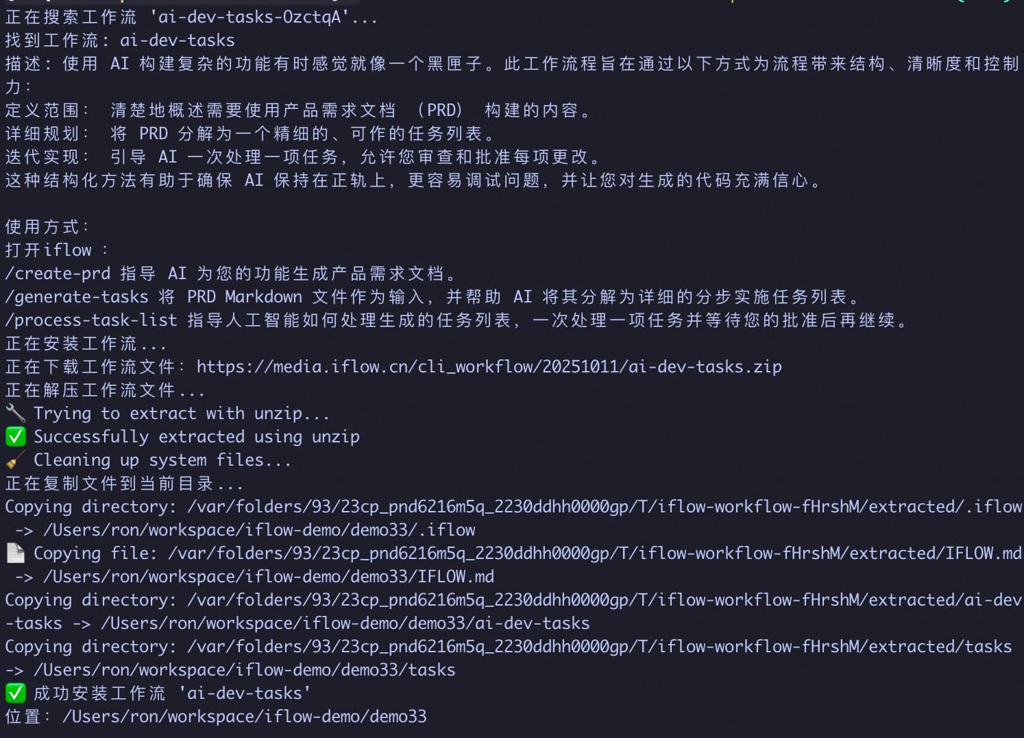 >iflow workflow add "ai-dev-tasks-OzctqA"