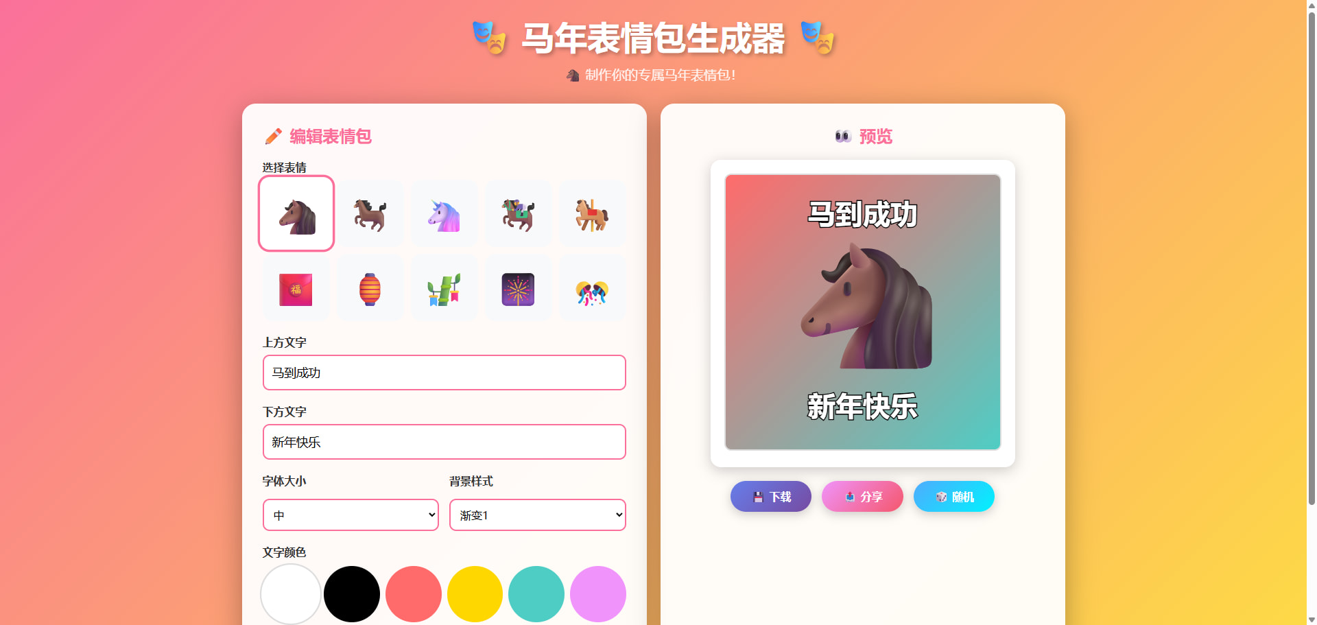 预览地址: 🎭 马年表情包生成器 - 制作你的专属表情