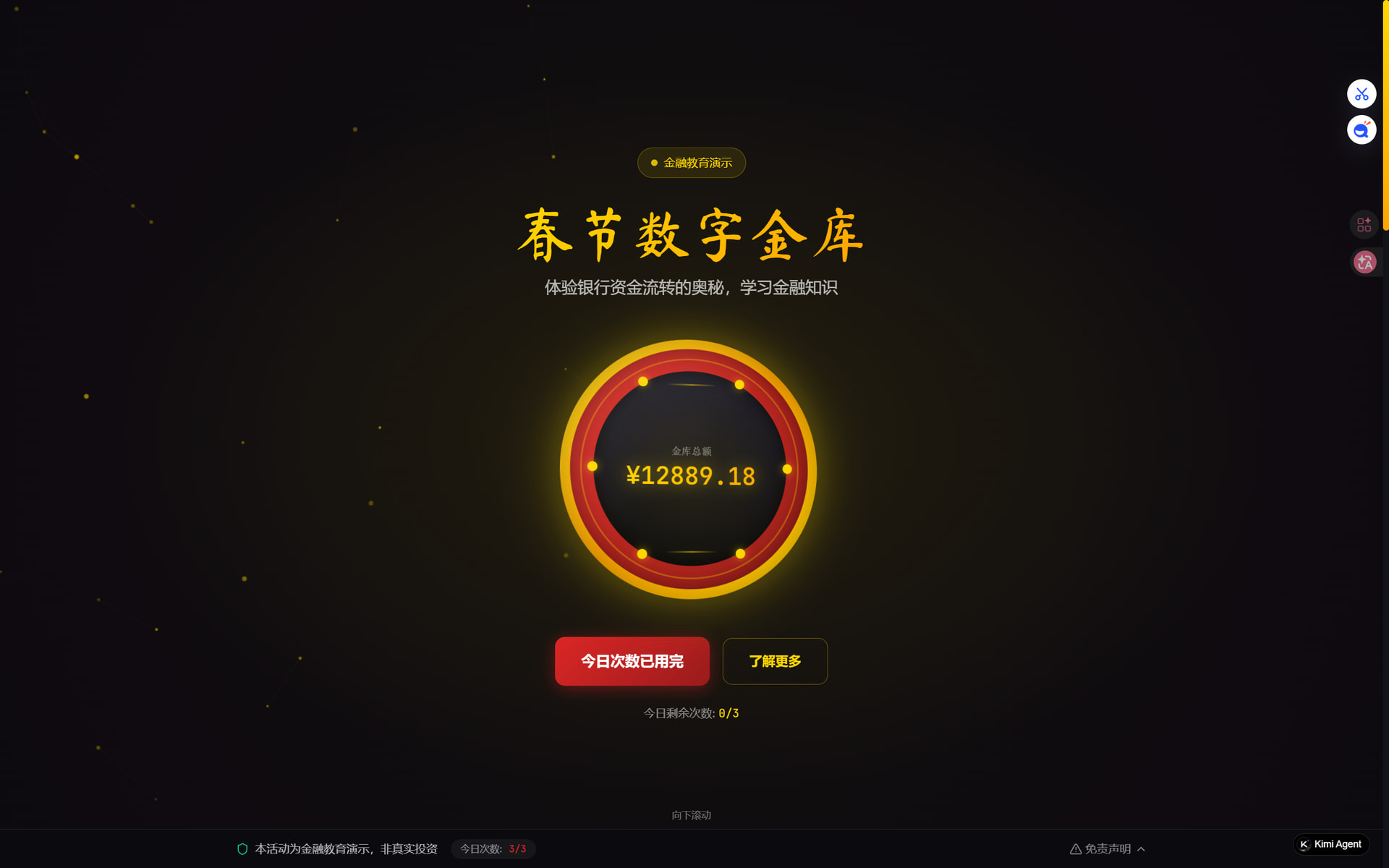 我已经为您打造了一个有质感的春节数字金库金融教育网页,融合了您要求的科技感深色风格与春节主题。