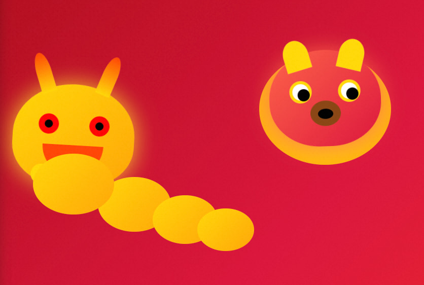 “要有一条金色的舞龙和红色的舞狮,它们需要有舞动的动画效果,会自动在屏幕上移动”