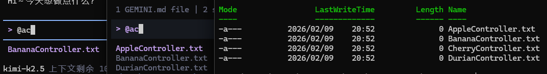 第二个是模糊搜索文件,以下图为例 (左 iflow cli,中 gemini cli,右实际文件),目前 iflow(0.5.8) 只能匹配连续的字符,而 gemini 的可以匹配不连续的字符,在复杂项目中容易出现重复文件名相似的情况,模糊搜索文件可以不需要完全记住文件名,只记住缩写或部分字符