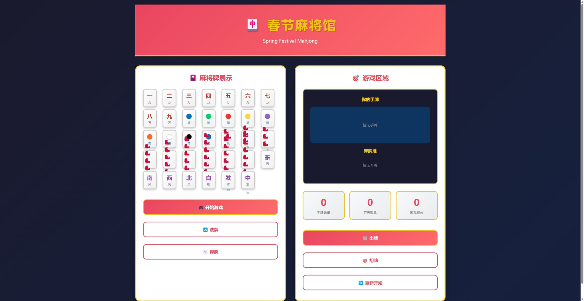 - 头部:麻将风格的标题区域,带有麻将emoji(