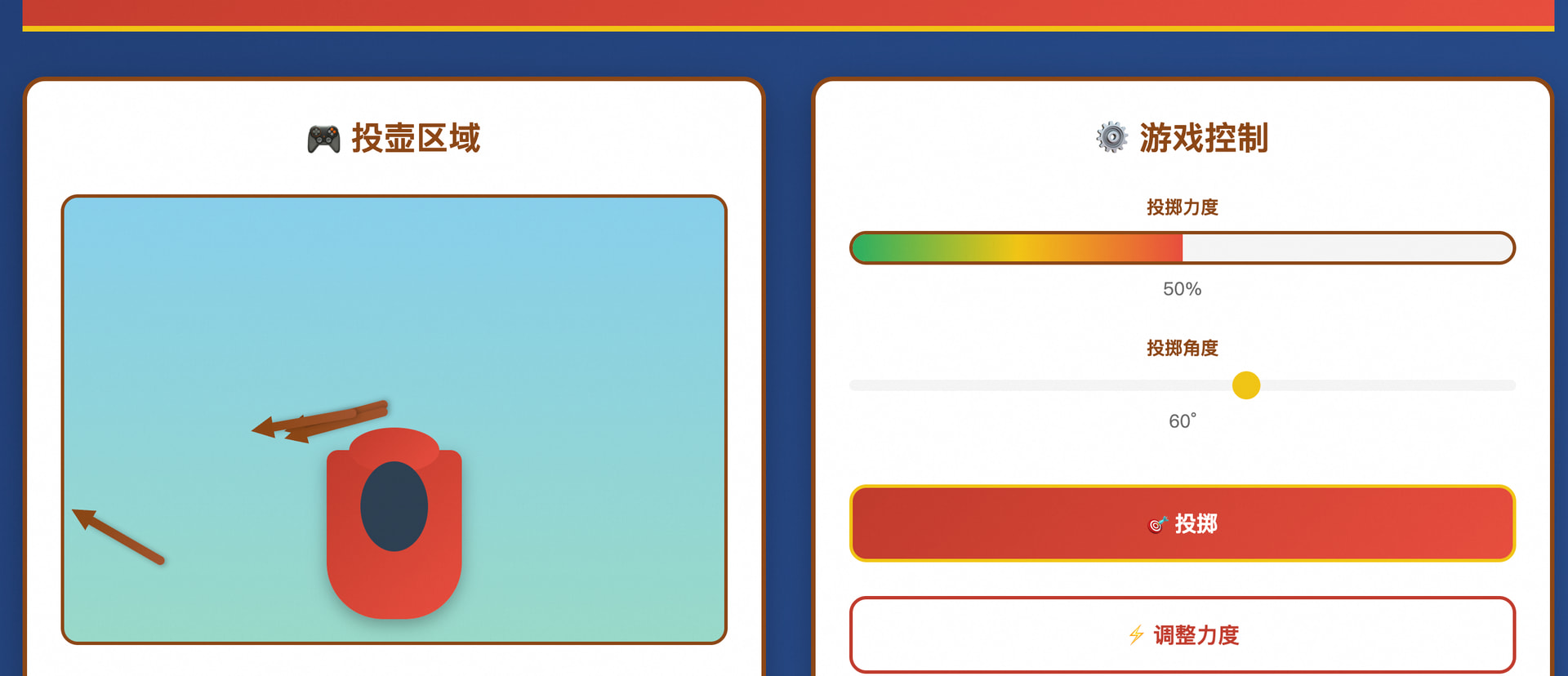 - 采用2列网格布局,左侧为投壶游戏区,右侧为游戏控制面板