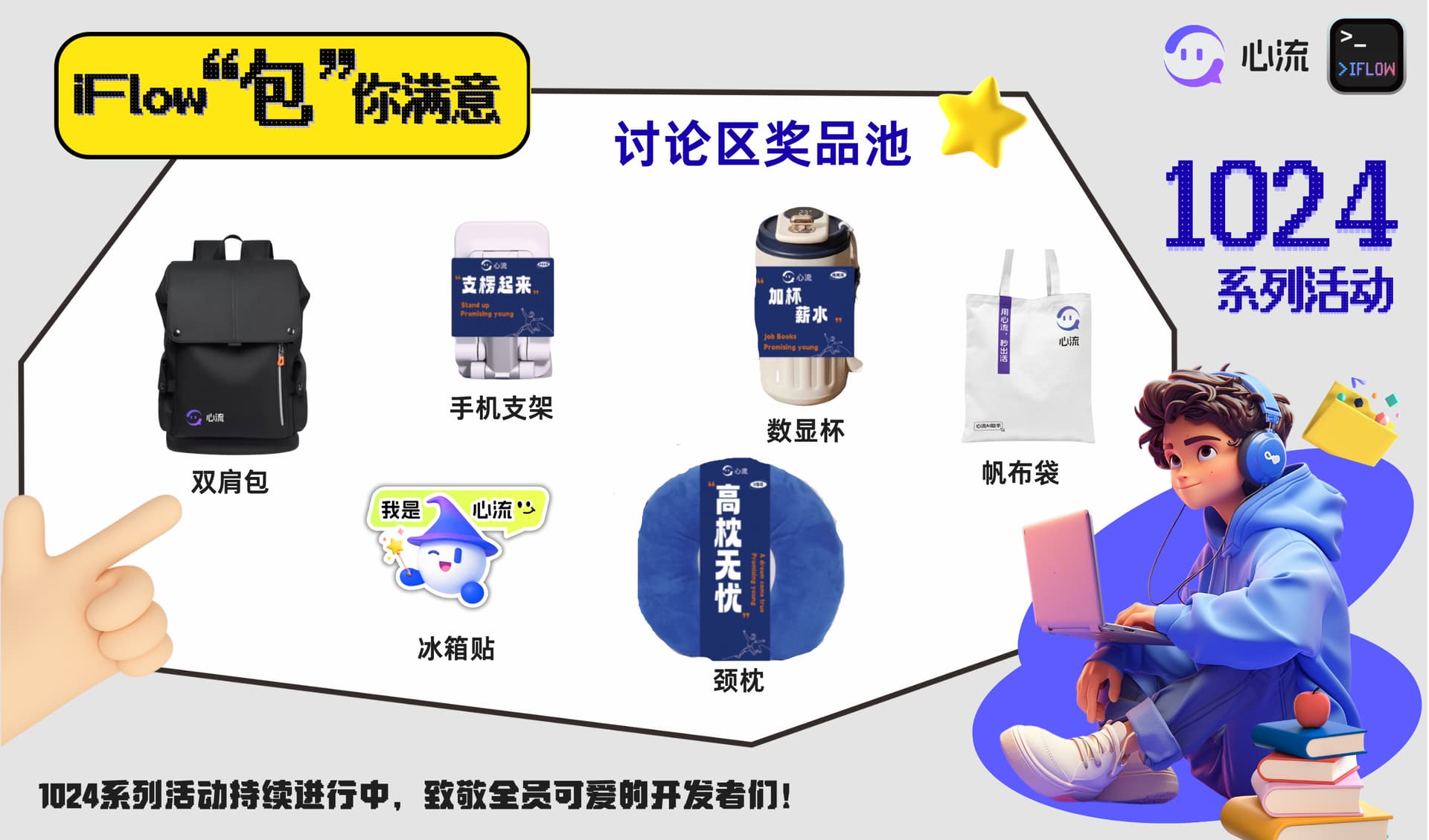 本周五就是1024程序员节啦,为庆祝大家的专属节日,iFlow 讨论区带来了一系列的有奖活动,目标送点福利,回馈大家的热爱!致敬全员可爱的开发者![]()