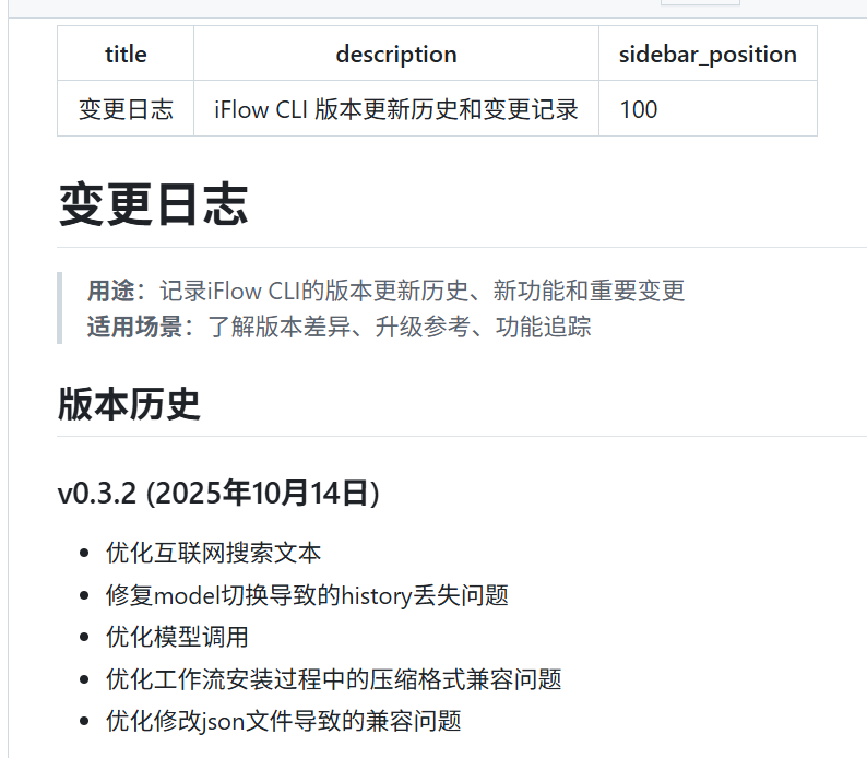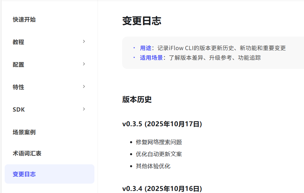 1、iFlow CLI 自动升级时是否可以显示更新日志?不然都不知道更新了什么。(官网和 github 上也找不到)