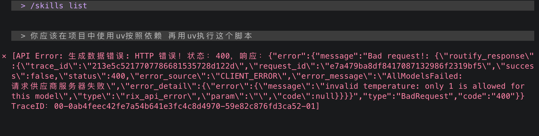 执行此步骤建议更换长模型并控制输出长度避免