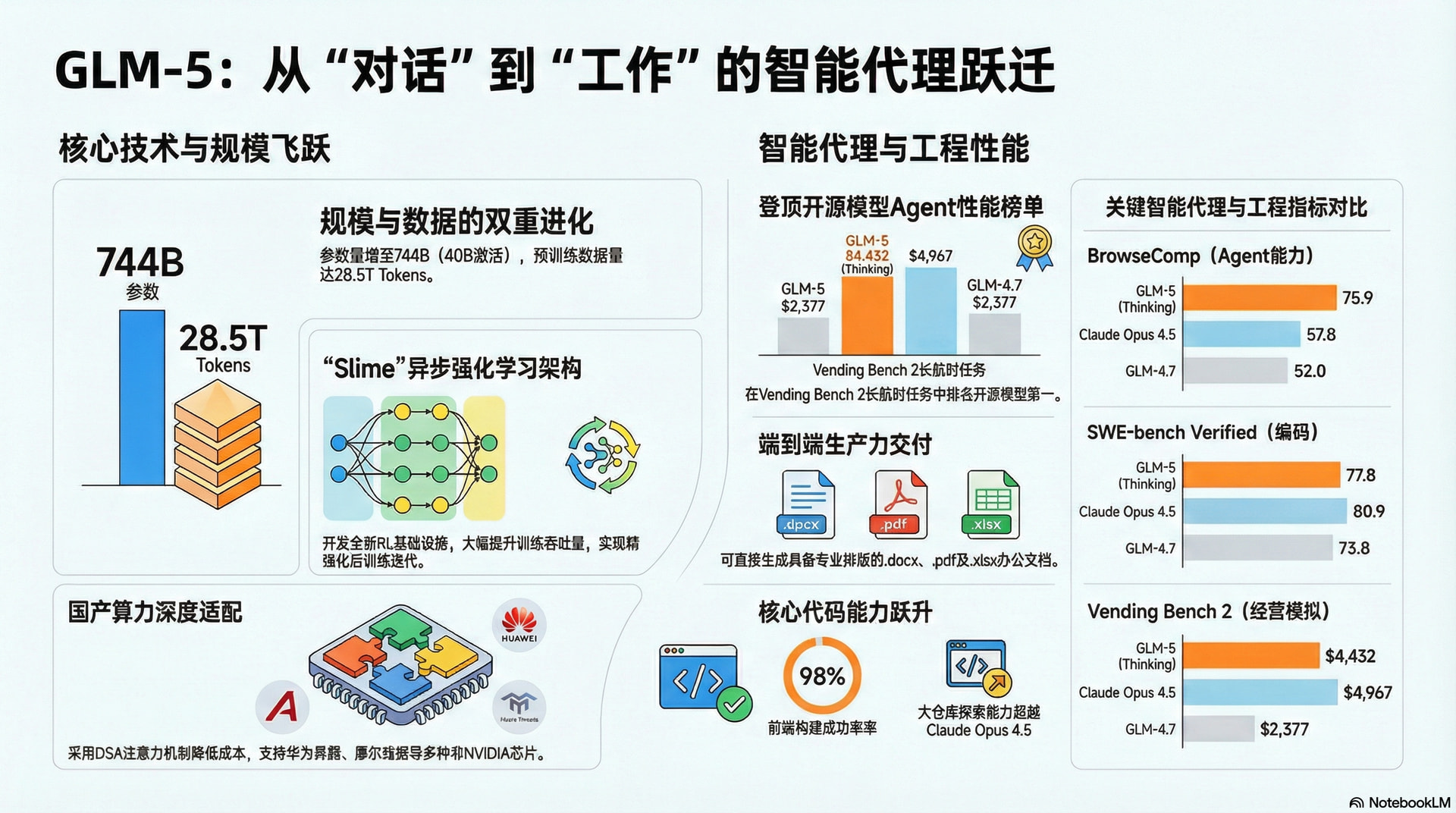 GLM-5 在底层架构和训练基础设施上进行了“工业级”的革新: