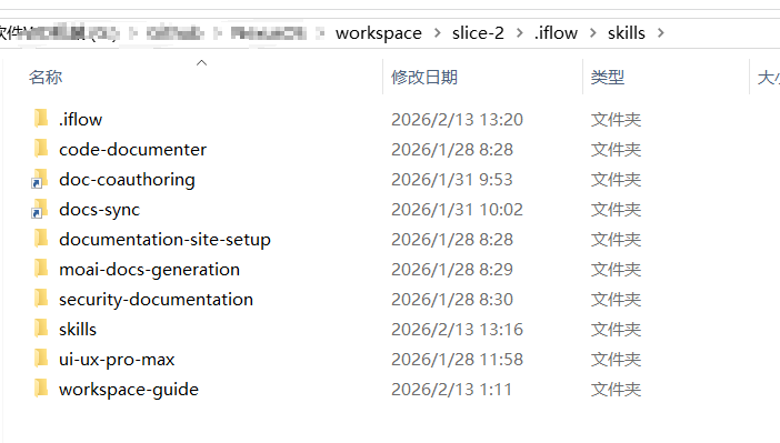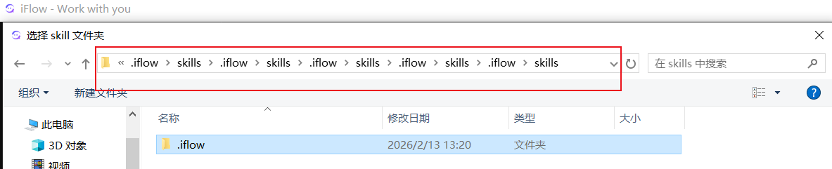 点击选择项目.iflow目录导入。没有显示技能