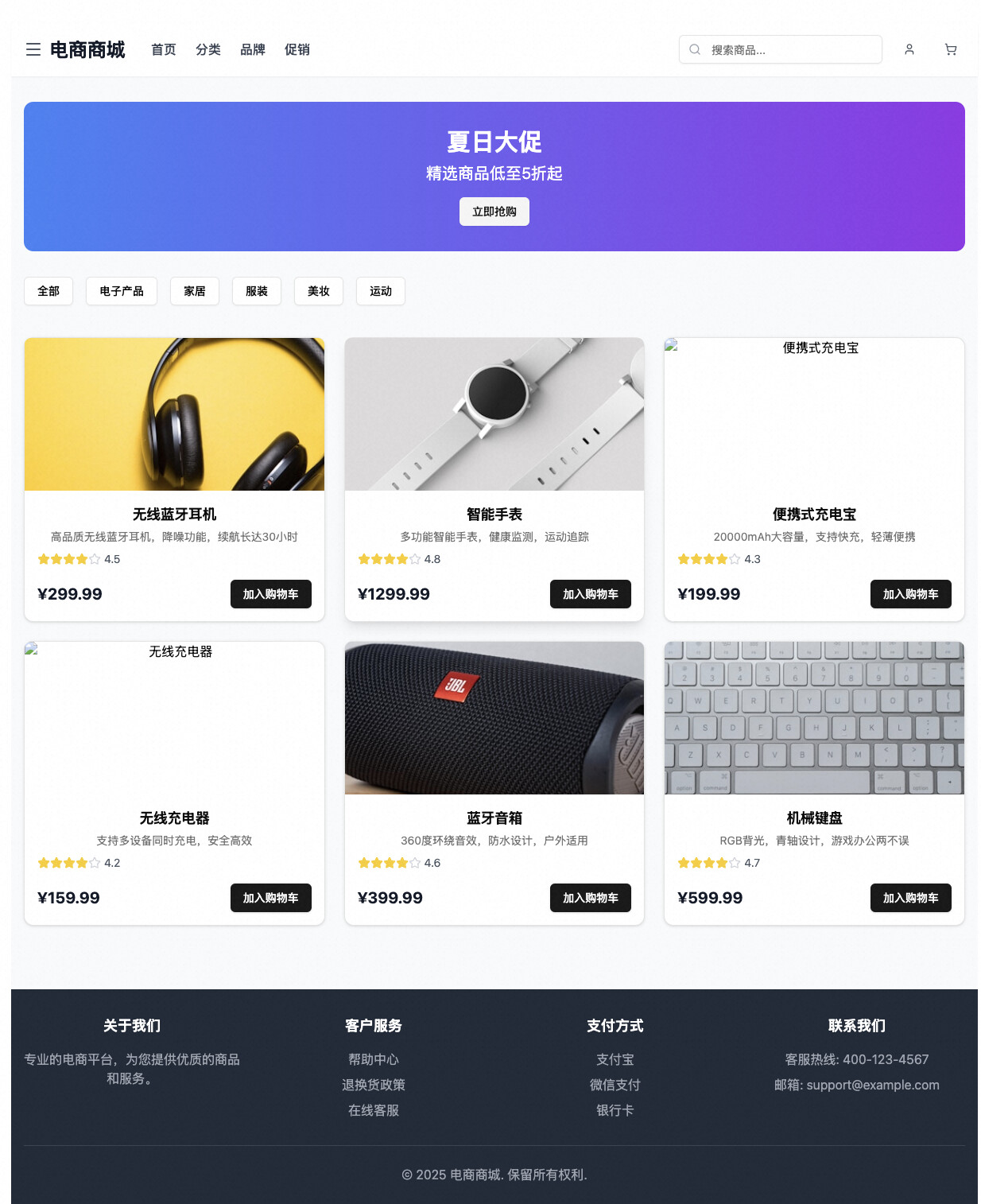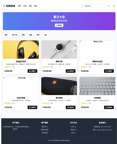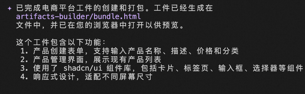 输入指令:/artifacts-builder 生成电商平台工件并在浏览器中打开