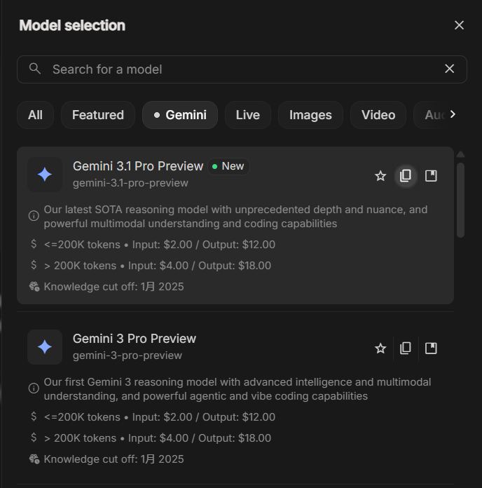 Gemini 3.1 继续沿用了基于上下文长度的阶梯定价模式: