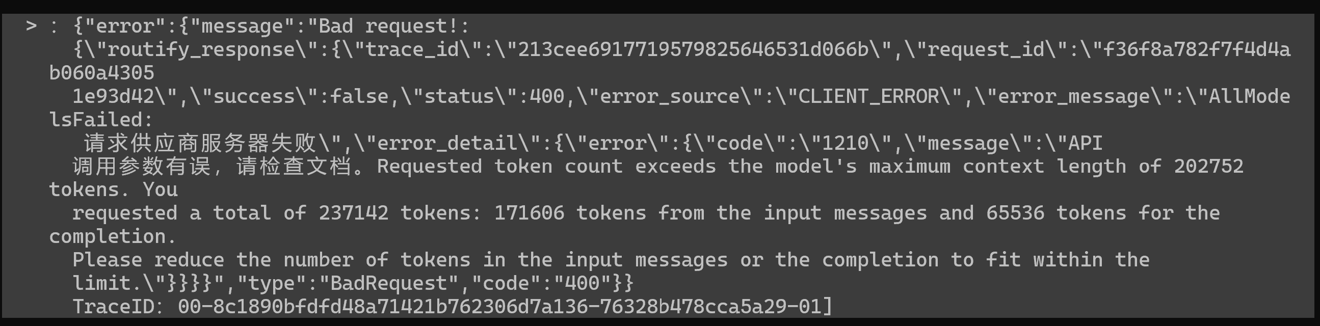 这个问题我也遇到过,不过当时我是放了一张图让它读,用户提示词也没写几个字,就报了这个错,当时上下文剩余还挺多的,离自动触发压缩都还有段距离呢,后来我好像是换了个模型重复指令又发了一遍,就好了