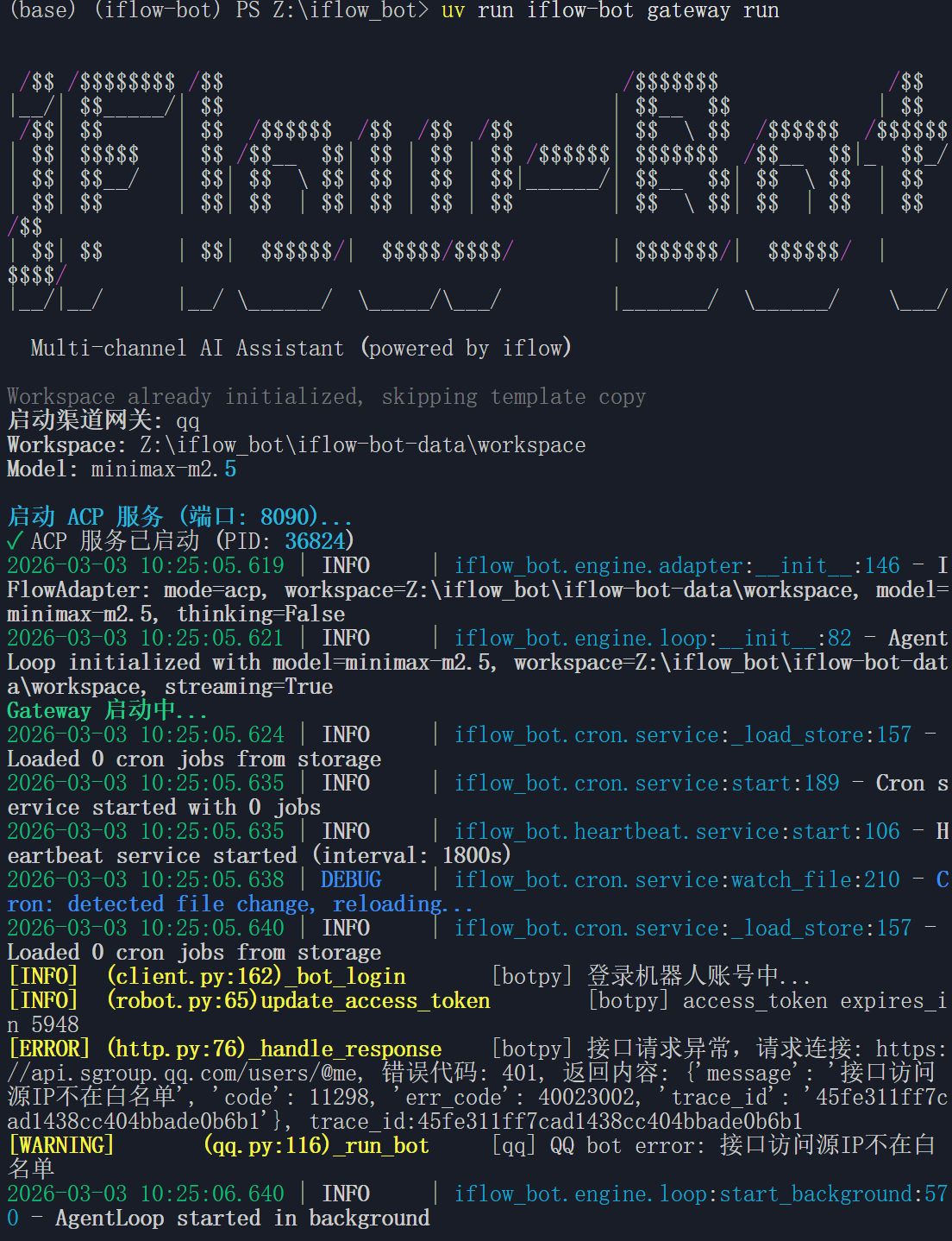 2026-03-02 19:01:34.313 | INFO | iflow_bot.engine.loop:run:214 - AgentLoop started, listening for inbound messages...